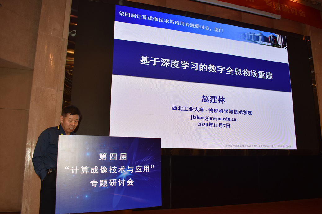 曹良才教授,以“压缩感知数字全息计算成像技术”为题介绍基于衍射传输的无透镜压缩数字全息成像模型,利用基于全变分正则化约束和两步迭代收缩阈值的优化算法,可以抑制全息重建的二阶项噪声与孪生像噪声,通过在重建模型中引入滤波层,能够提高三维图像的重建信噪比。