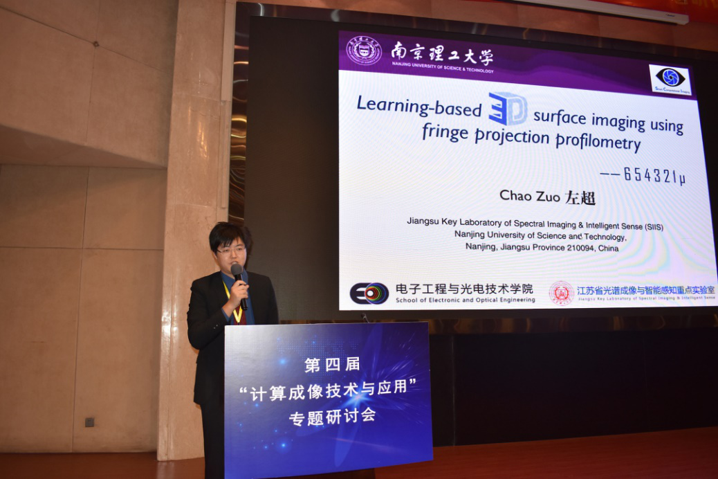 南京理工大学左超教授,以“基于学习的快速结构光投影三维成像与传感技术”为题介绍了他们最近将深度学习方法应用于条纹投影轮廓术的一系列工作。