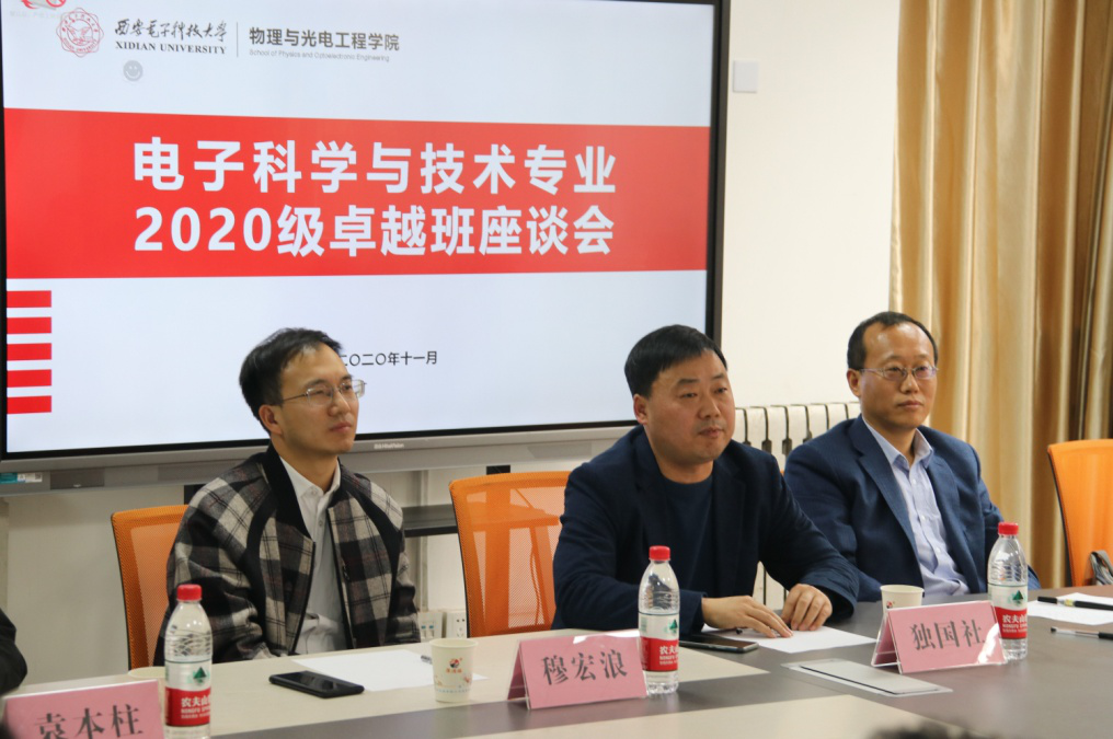通讯员(袁本柱、王纲、黄雅琪、杨金诚)11月13日下午14:00,物理与光电工程公司2020级电子科学与技术专业卓越班座谈会在南校区竹园3号书院Ⅱ区323会议室顺利召开。公司党委书记独国社、执行经理邵晓鹏、竹园三号书公司党委副书记穆宏浪和课程负责人王炳健与30名新生共同参加了见面会,会议由2020级本科生辅导员王纲主持。