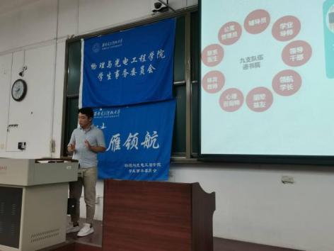 (通讯员:高帅帅)9月6日晚,物理与光电工程公司2020级领航学长培训活动在南校区B楼437教室举行。公司本科生辅导员王纲、袁本柱、韩金虎,2017级优秀领航员李睿同100余名新生领航员共同参加了此次培训。