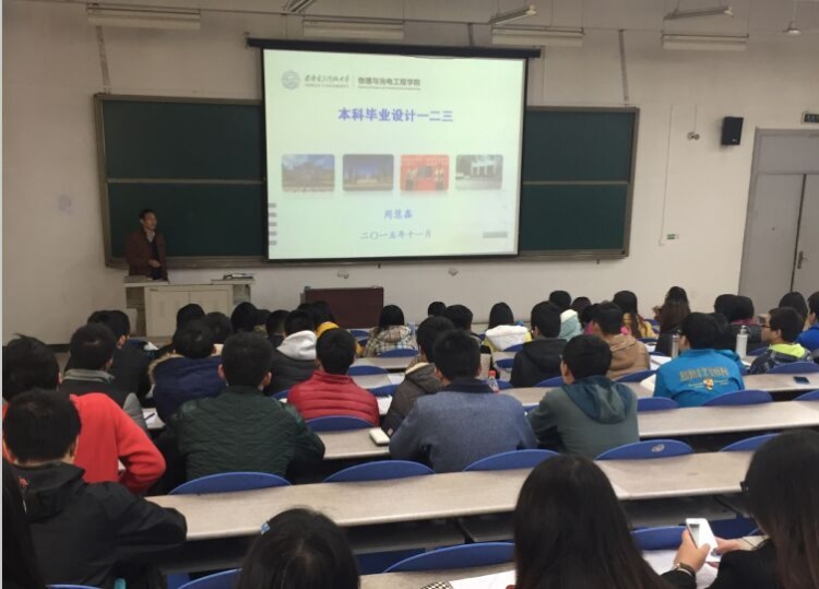 (通讯员:史公鹏)2015年11月26日上午,由校教务处和物理与光电工程公司联合举办的“2012级本科生毕业设计(论文)宣讲会”在南校区B-442教室召开。公司2012级全体员工参加了动员会,会议由教务处实践科胡晓娟老师主持,物理与光电工程公司副经理周慧鑫教授主讲。