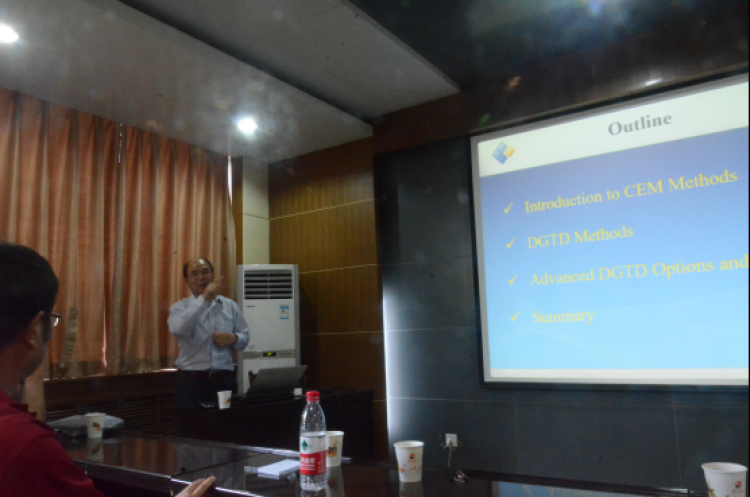 (通讯员 刘忠玉)近日,应公司郭立新教授邀请,2COMU公司的CEO余文华教授来校进行学术交流,并于2016年7月30日上午10:30在西大楼Ⅲ区412报告厅为公司师生作了题为“DGTD Methods and Engineering Applications”的报告。
