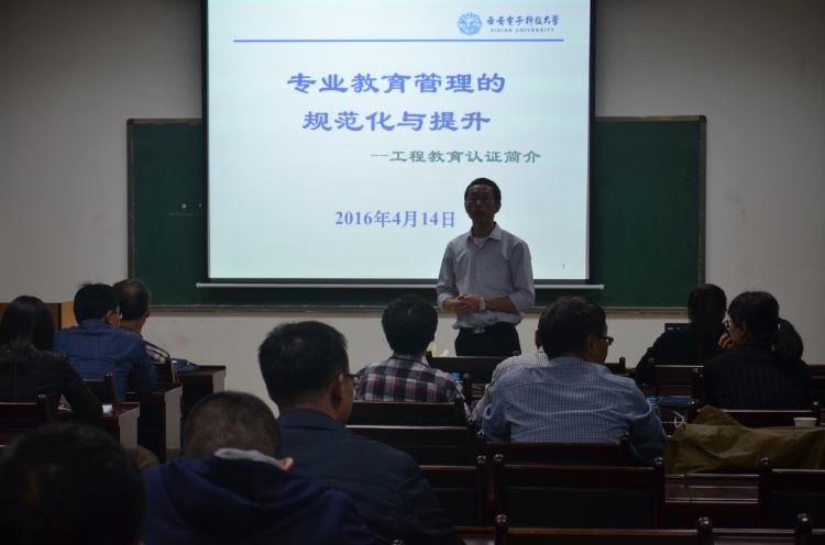 (通讯员:柴亚茹)4月14日晚,公司在西大楼学术报告厅开展了本学期第三次教学沙龙活动。曾晓东教授围绕工程教育认证形势与要求、工程教育认证标准解读、专业自评工作与要求等方面作了题为“专业教育管理的规范化与提升——工程教育认证简介”的专题报告。副经理周慧鑫主持活动,教师教学发展中心教学能力培训科科长张宇鹏及公司电子科学与技术专业四十余教师参加了此次活动。