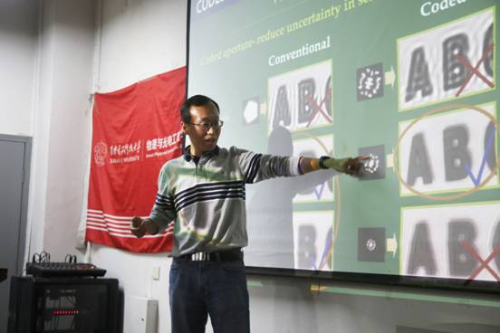 (通讯员:杨宗儒、张倩)2017年11月28日晚7点,一场有关计算成像发展与应用的讲座在E楼三区315如期举行。主讲人邵晓鹏教授为同学们生动地介绍了传统成像与计算成像两种成像方式,同时简单剖析了二者的区别。科技在不断创新,创新需要完备的知识体系,讲座进行过程中,邵晓鹏教授带领大家领略到了科技日新月异的魅力,为大家上了精彩难忘的一堂课。