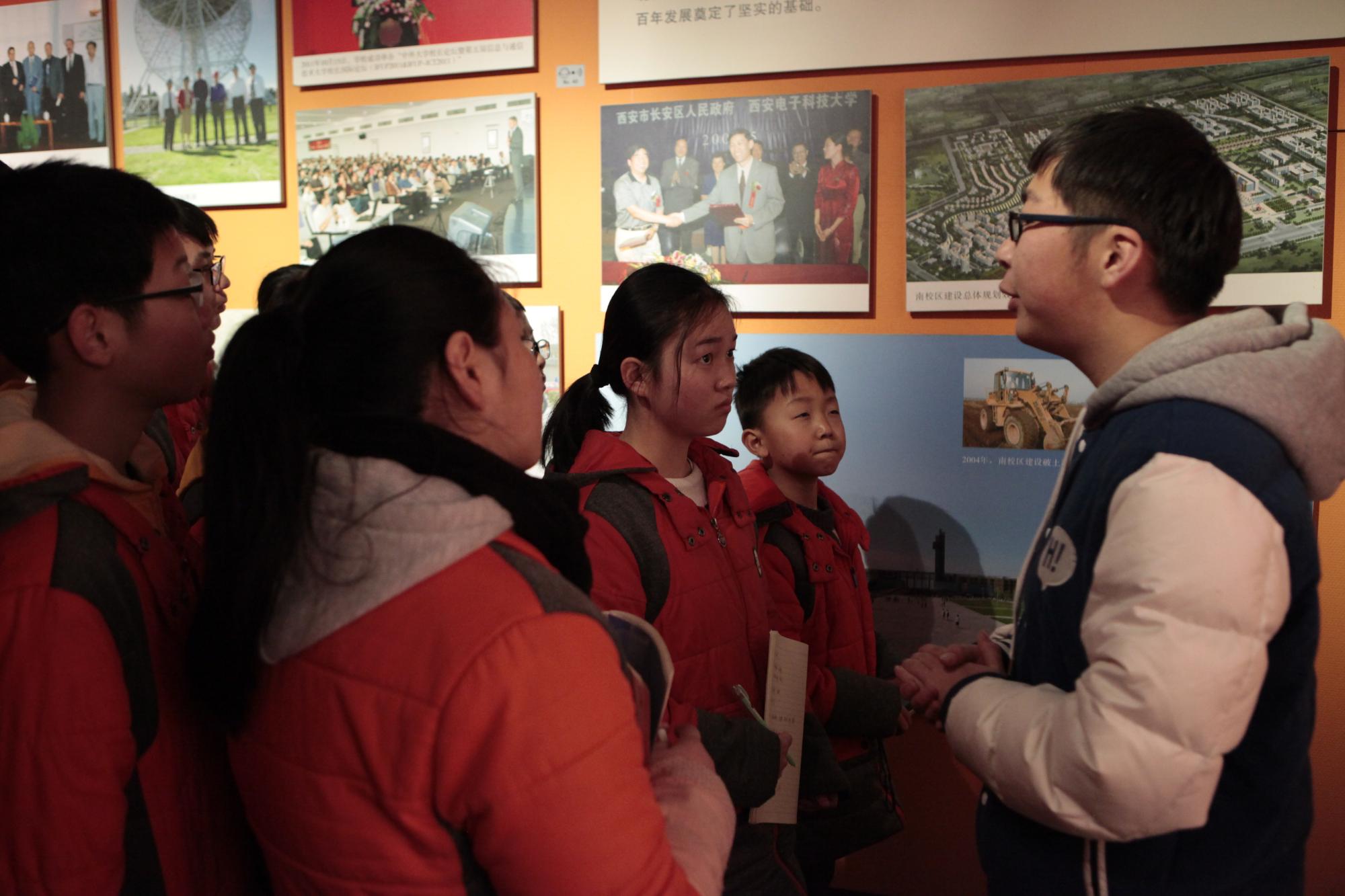 西电博物馆让来访师生大开眼界,西电博物馆让来访师生大开眼界,同学们跟随解说员的脚步,依次参观了序厅、通信厅、雷达厅、计算机厅、电子元器件厅、电子测量仪器仪表厅、未来厅等七个单元,一件件珍贵的实物,引起了同学们极大的兴趣。一些同学们频频向讲解员提问,虽然一些原理还挺不太懂,但可以看出,同学已经被电子科技的无穷魅力深深吸引。在留言台的一张白纸上,同学们自发地以稚嫩的笔迹抒发着对西电的向往之情。