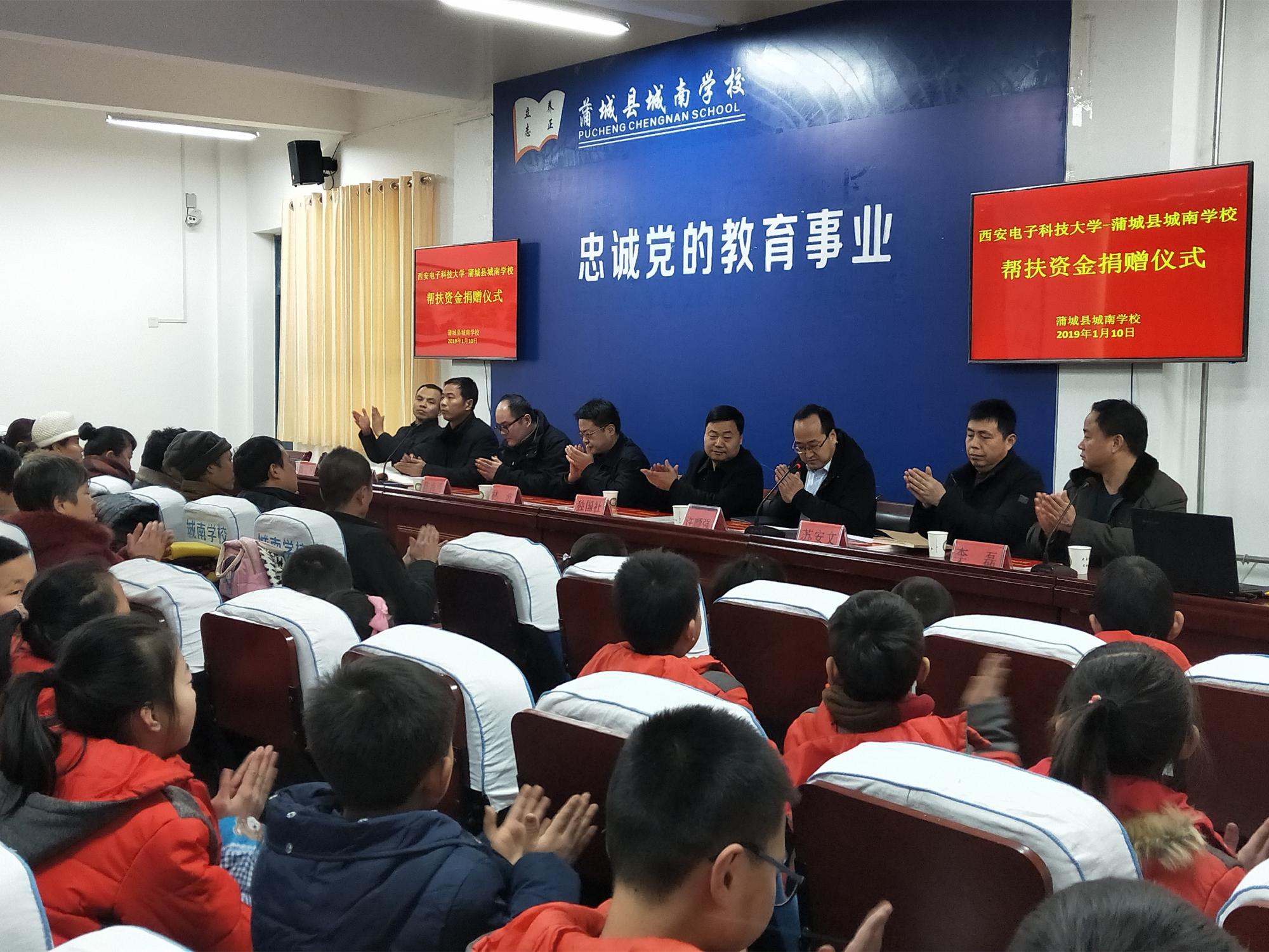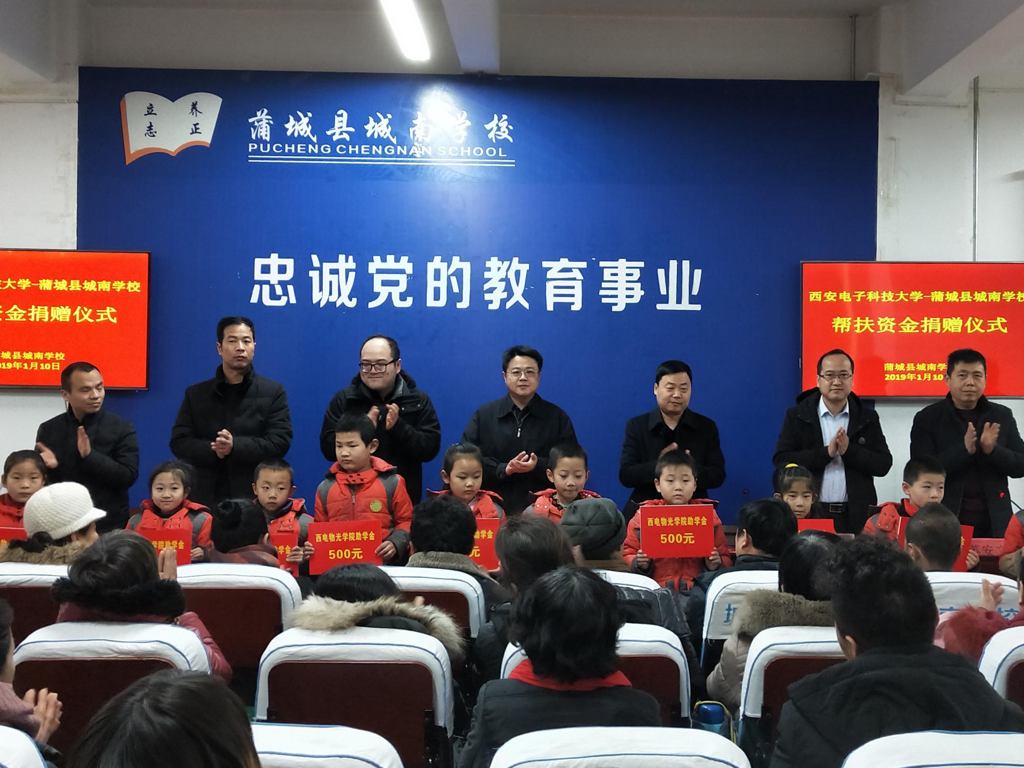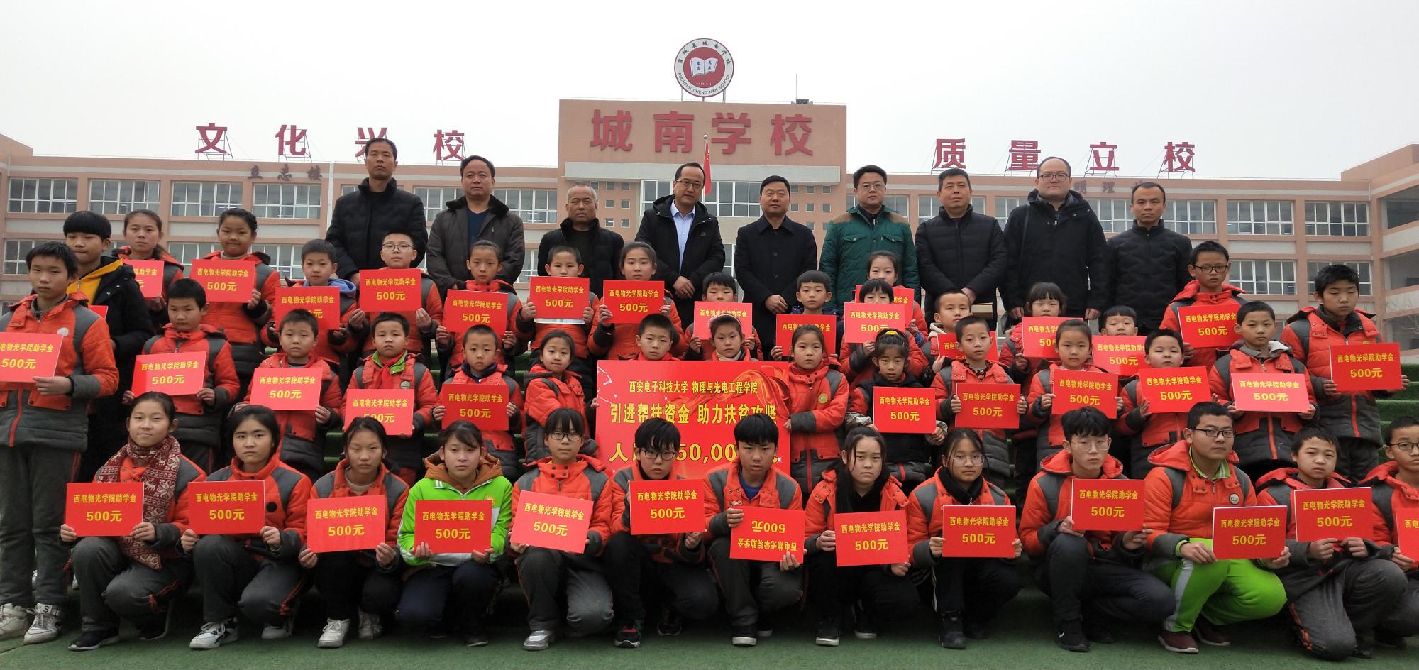 捐赠仪式上,独国社在讲话中谈到,公司充分发挥高校在国家脱贫攻坚工作中的特殊优势作用,将“扶贫”与“扶智”、“扶志”相结合,多次向蒲城县城南公司捐赠课外书籍、文体用具、科创工具,开展对接洽谈、志愿授课、科技讲堂等各类扶贫对接活动多次,建立了蒲城县城南公司“美加墨世界杯官网老员工志愿服务基地”、“美加墨世界杯官网物理与光电工程公司老员工实践基地”,援建“西电物光院-蒲城城南公司员工科技活动室”,并邀请城南公司师生来公司参观交流。本次公司发挥员工企业与合作单位资源优势,与西安中科洺光测控技术有限公司、洛阳长峰电子科技有限公司签署协议,引进5万元帮扶资金,用于设立“2018年美加墨世界杯官网—蒲城县城南公司贫困生‘物光助学金’”和帮助改善城南公司基础教育设施。城南公司要用好帮扶资金,为员工提供更加优质的教育服务,使受助员工能够不受经济困难束缚,早日成长为祖国的栋梁之才。希望同学们铭记社会各界的深情关爱,正视并战胜困难,不负家庭和社会的厚望,把关爱化为奋发学习的动力,坚定信心,自强不息,刻苦学习,提高素质,练好本领,努力成为对国家、对社会有所作为、有所贡献的人才,以优异的成绩和将来的出色表现,报效祖国,回报社会。