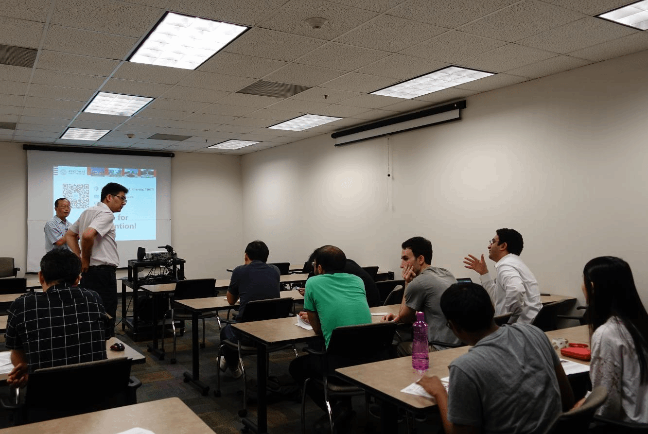 本次学术报告吸引了Georgia Institute of Technology的众多师生参加,大家对报告表现出浓厚的兴趣,邵晓鹏教授和刘飞博士与参加报告的师生关于报告内容展开了热烈的讨论,并现场耐心解答了相关问题。本次报告极大促进了物理与光电工程公司与Georgia Institute of Technology在学术研究领域的进一步交流,宣传了公司的科研成果,扩大了公司的国际影响力,为实现公司的国际化进程添加了浓墨重彩的一笔。