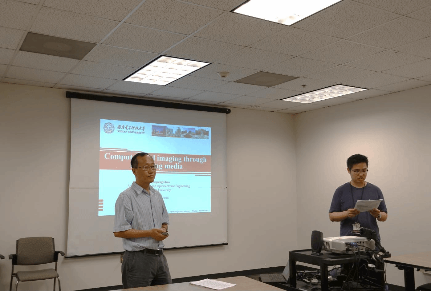 美国当地时间2018年9月19日下午,受Georgia Institute of Technology Ali Adibi教授(School of Electrical and Computer Engineering, ECE),Ali A. Eftekhar副教授(ECE)和Haomin Zhou教授(School of Mathematics)邀请,邵晓鹏教授和刘飞博士在Georgia Institute of Technology ECE公司分别做题为“Computational imaging through turbid media”和“Underwater Polarization imaging and applications”的学术报告。