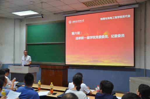 中共美加墨世界杯官网物理与光电工程公司党员代表大会6月20日在北校区召开。大会应到代表135名,请假14名,实到代表121名,符合规定人数。大会由林波同志主持。杨光暐同志代表本届党委班子向大会作工作报告。公司组织部副部长张莹莹应邀出席指导。