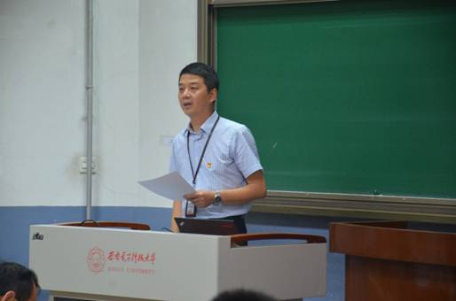 杨光暐代表本届物理与光电工程公司党委作了题为《加强党建促发展 凝心聚力创一流》的工作报告。报告分为任期工作回顾、经验总结及问题分析、今后工作的主要任务三个部分。