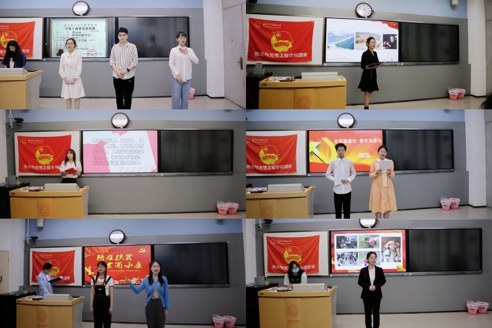 演讲者孙菁苗、宋殿宇以春耕景象切入,表达了对艰苦岁月中奋斗青年的敬仰之情,同时以西电校园中身边可见的事例,展现了西电学子的青春风采,抒发“青年当有为”的感慨;雷泽宇、朱源田以《后浪奔涌,不负盛世华夏》为题,展现了青年人在体育赛场、疫情战场上的青春力量,他们谈到,“在新时代,青年从未退步,而是用这个时代特有的旋律,奏响青春之歌”;孙童以时代楷模黄文秀以及瞿秋白烈士的事迹为例,探索青春的价值,发出青年声音:“潮平两岸阔,努⼒正当时!好风凭借力,成长正当时!青春心向党,奋斗正当时!”