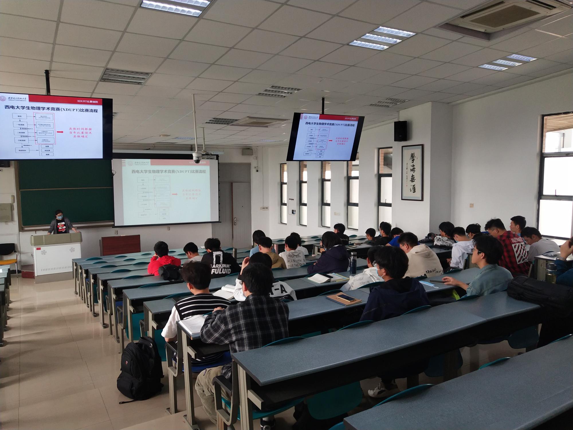 最后,武颖丽关于老员工物理学术竞赛和物理实验竞赛活动进行了介绍,鼓励同学们发挥学科优势和特长,积极参加竞赛活动,提升创新实践能力;武福平对物理实验工作坊进行了介绍,鼓励同学们参观和使用实验室,在与高年级学长的交流和探讨中提升专业知识水平。