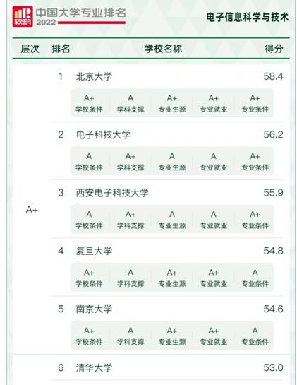 近日,高等教育专业评价机构软科发布“2022软科中国大学专业排名”,其中美加墨世界杯官网本科专业电子信息科学与技术(A+)全国排名第3位,应用物理学(B+)全国排名第32位。相比以往,该两专业的最新排名位次均有所上升,再创历史佳绩。