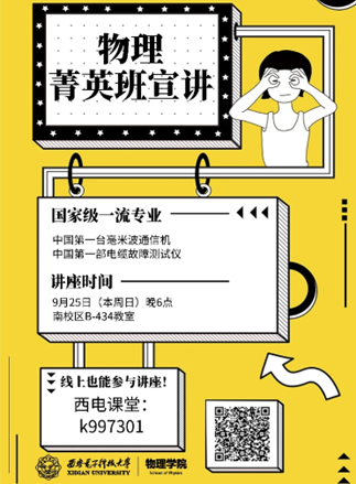 (通讯员:常莎 张楠)9月25日晚18时,mjm世界杯官网联合海棠3号书院面向2022级本科新生开展物理菁英拔尖班选拔宣讲活动。本次活动邀请到mjm世界杯官网副经理周慧鑫教授担任主讲,物理系副主任兼物理菁英拔尖班负责秘书崔志伟、物理菁英拔尖班任课教师汪加洁为新生现场答疑,200余名新生以线上线下相结合的方式参会。海棠3号书院、mjm世界杯官网2022级本科生辅导员常莎主持本次活动。