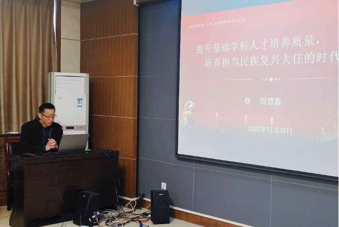 会上,经理郭立新带领大家学习了二十大报告的第五部分—“实施科教兴国战略,强化现代化建设人才支撑”原文。副经理周慧鑫结合公司实际情况做了主题发言。他详细介绍了培养基础学科人才和时代新人的有效途径和价值导向,重点介绍了物理菁英班基础学科人才培养质量提升计划。各参会老师以问题为导向,围绕人才培养生源、培养等环节,结合自己在教学过程中的碰到的实际情况,集思广益,共同为提升人才培养质量建言献策。
