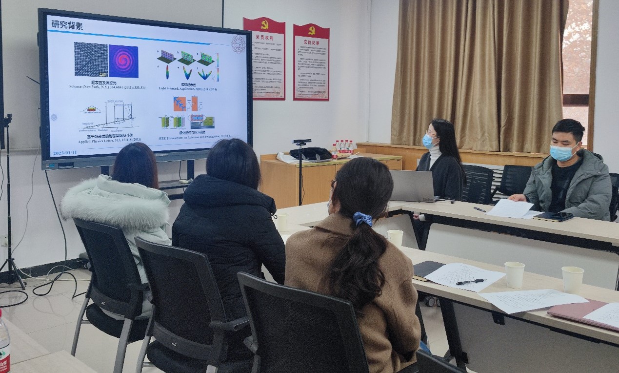 随后,屈丹、安莎、黎凤霞、杨小帆四位受邀学者就其研究领域前沿问题、研究成果分别作了名为“手性光、电、磁功能材料”、“超分辨光学显微技术”、“极化人工结构及其应用研究”及“高压下若干新型关联电子材料的输运研究”的研究报告。