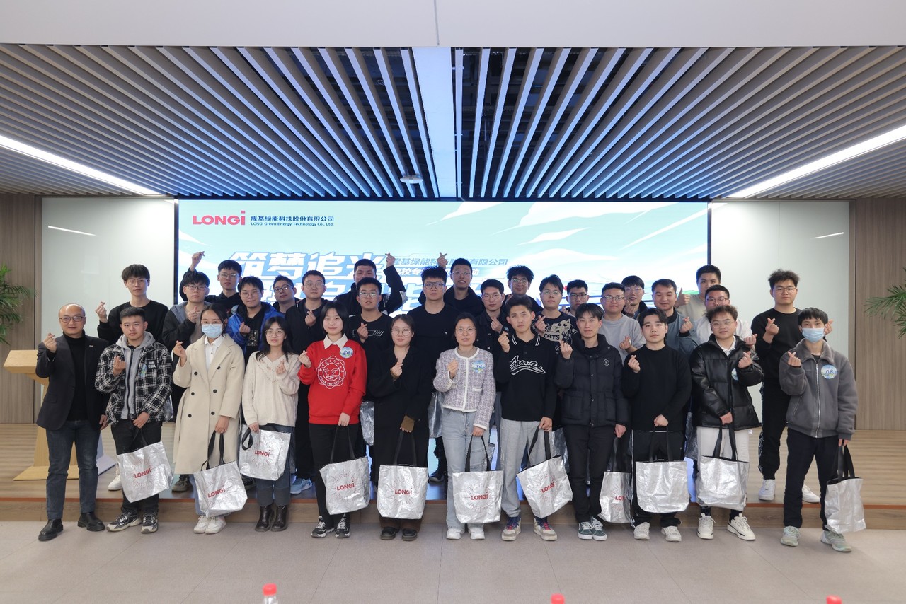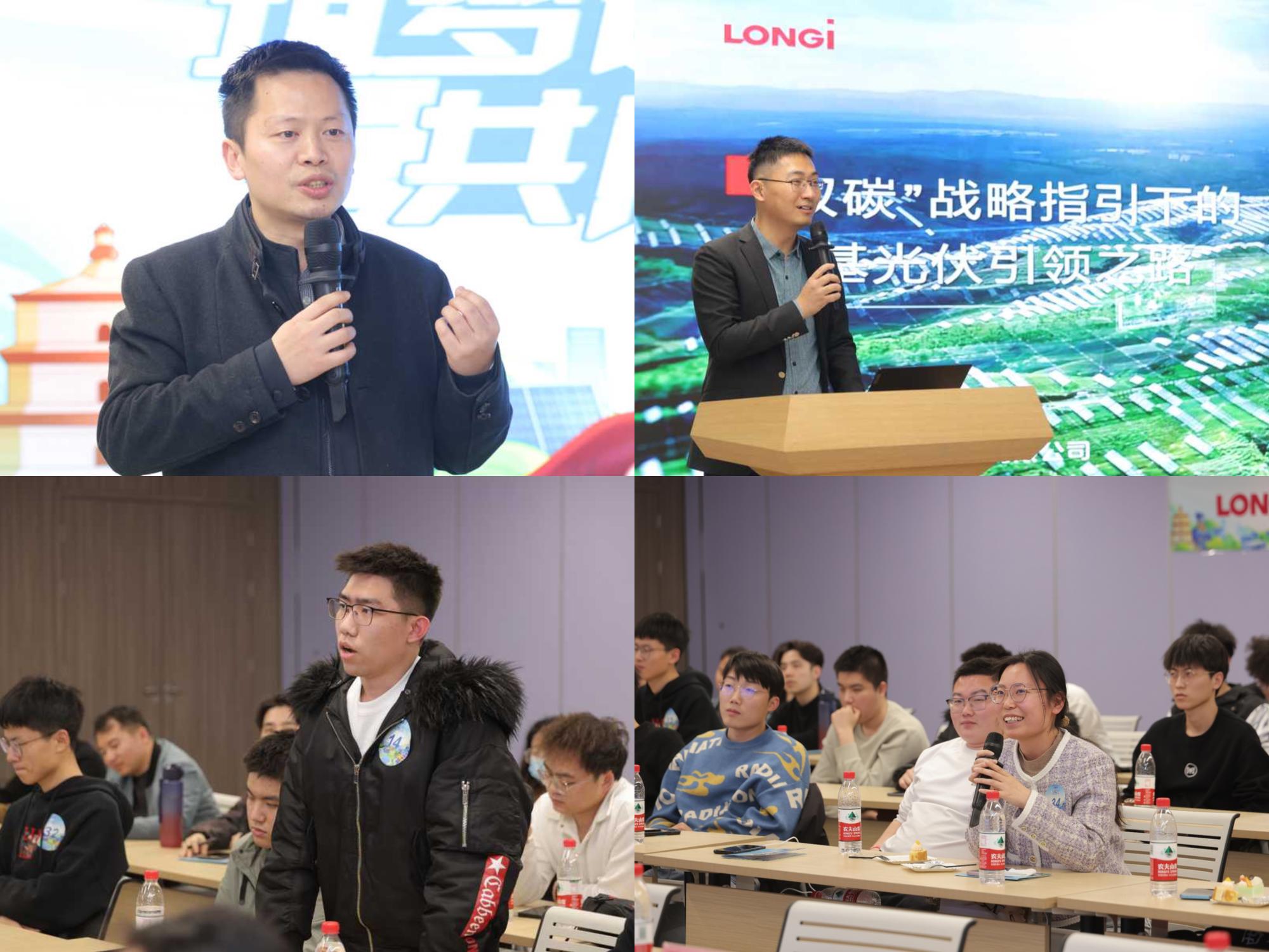 隆基绿能人力资源副总经理马福海、招聘管理部负责人戴坚、品牌管理部品牌规划总监李濛、招聘管理部高级经理郭彦、品牌管理部经理周浩等公司领导向同学们介绍了公司生活和工作情况进行了介绍,并就校园招聘、技术发展、个人规划等问题与同学们进行了深入的交流。