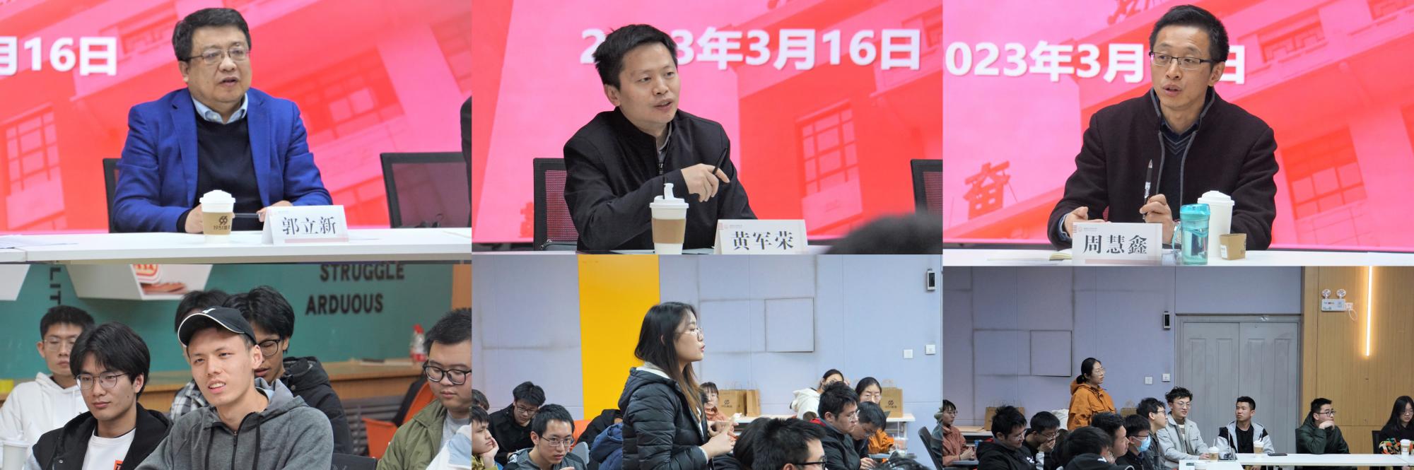 同学们在互动交流阶段分别就物理菁英班本硕博贯通制培养、一对一科研训练导师、保研政策、出国交流、学习中的困惑等问题进行提问,郭立新、周慧鑫、黄军荣与同学们真诚互动,认真回答同学们的问题。郭立新还分享了自己的学习成长过程中经历,他说在学习道路上常有困惑之时,但只要坚持对待科研充满兴趣和爱好,与实际生活运用相结合,体会学习和生活的乐趣,定能顺利度过困惑期。他强调,大家要明确方向,聚焦目标,树立信心,端正态度,不被外界的浮躁因素所干扰,找到适合自己的方式方法,扎扎实实,甘坐“冷板凳”,一定能取得最终的成功。