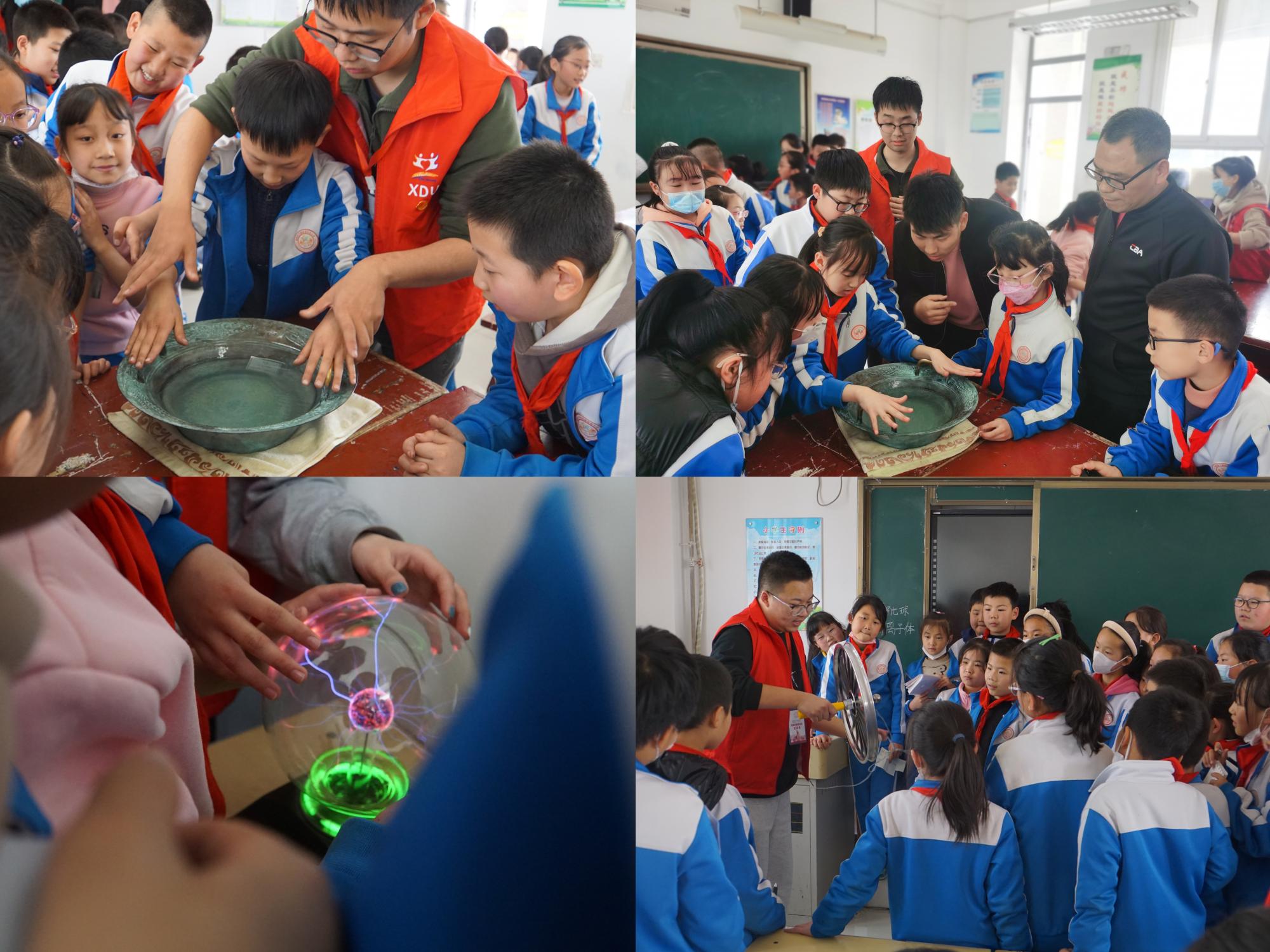 (通讯员 邵思颖 景玉)为深入学习宣传贯彻党的二十大精神,立足社区需求,聚焦西电特色,把社区实践做“实”,4月7日下午,mjm世界杯官网志愿者服务队伍前往高新区第三十六小学,以激发员工科技兴趣为主题,开展了物理知识科普、物理趣味实验教学等志愿服务活动,带领孩子们走进科学,感受科学,喜欢科学。本次活动由mjm世界杯官网团委负责人罗庆辉带队,辅导员景玉及物理志愿者服务队的20余名同学共同前往,西安高新区第三十六小学党支部书记、董事长徐利民、副董事长赵建锋和校办负责人李蕴韬老师共同参加活动。活动依托mjm世界杯官网实验室的众多趣味仪器,根据员工年龄和实际科普内容,设计了有趣的物理实验,让孩子们切身体会到物理的魅力所在,激发孩子们内心对于科学的学习热情。