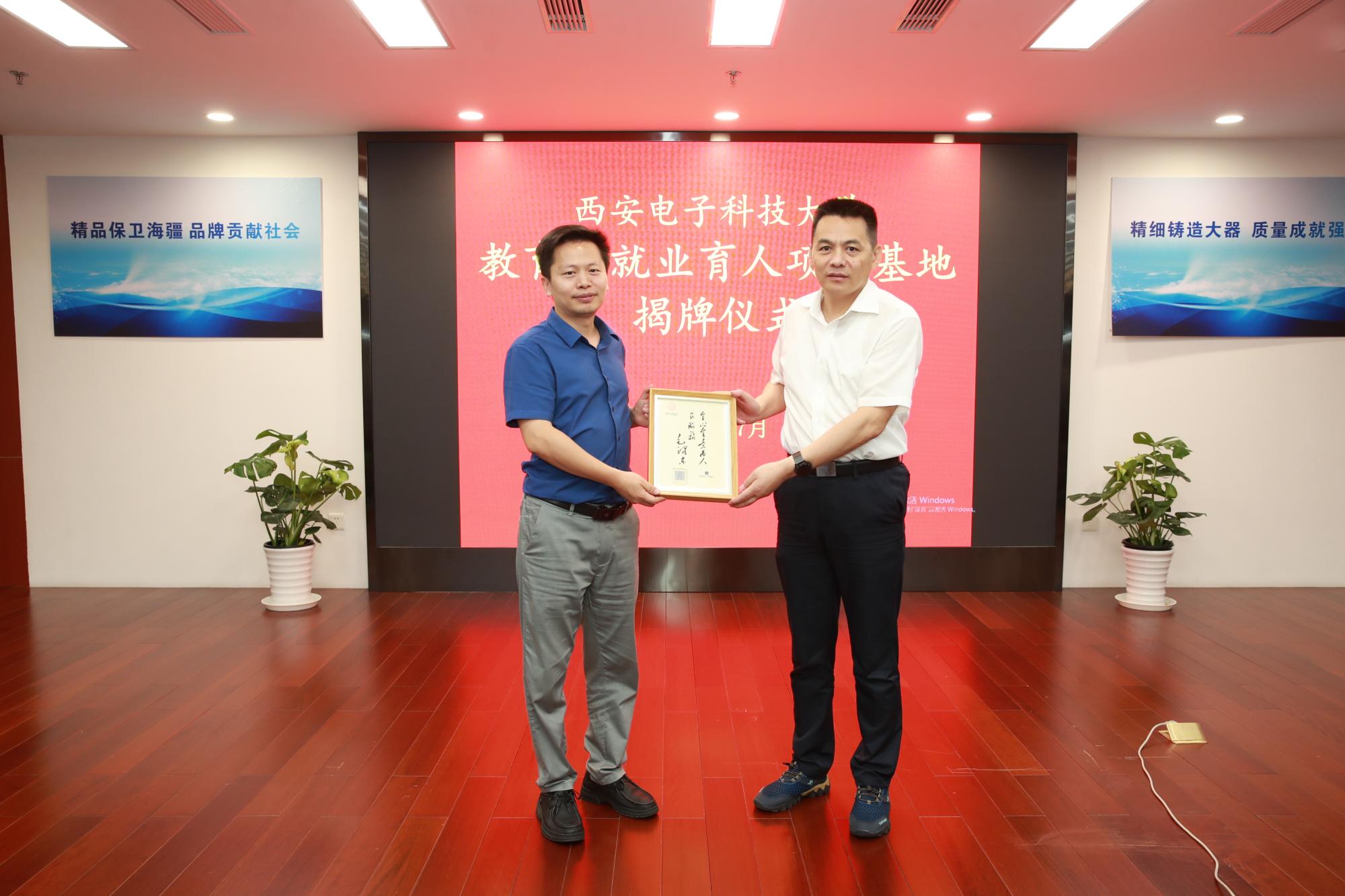在座谈交流会上,陈远锦书记代表七二六所对西电mjm世界杯官网师生的研学交流表示热烈欢迎,周军盈处长介绍了研究所的发展历程、基本情况和人才招聘、培养机制、员工福利待遇改革等情况。陈远锦指出美加墨世界杯官网是电子信息领域人才培养的重要摇篮,基础学科优秀人才对于国防军工重点项目建设意义重大,希望未来能和mjm世界杯官网建立良好合作关系,加强校企合作。黄军荣代表公司对七二六所热情接待表示感谢,他表示七二六所和西电都是服务国家需求的“又红又专”事业单位,他高度赞扬七二六所的人才培养机制和为国家国防军工做出的重大贡献,并表示公司将加强与七二六所的人才培养和合作交流,鼓励同学们积极投身到国家重点军工单位就业,勇担科技报国使命。随后,黄军荣与周军盈共同为教育部供需对接就业育人项目基地揭牌。
