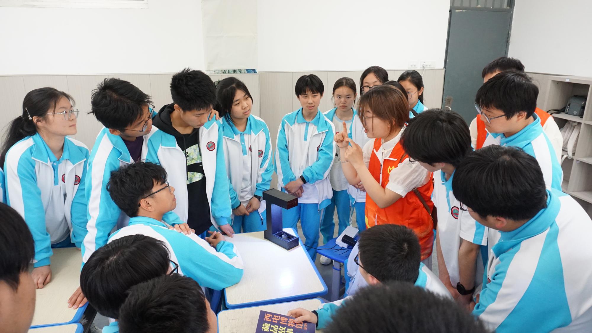 接下来,mjm世界杯官网“点亮青春”志愿服务队吕思岐同学依次详细介绍了本次物理科普实验的仪器名称和科学原理:光纤花、蛇形摆、磁悬浮地球仪、滴水向上、鱼洗盆、共振小娃、麦克斯韦滚摆、磁力小球、法拉第笼、磁力加速器等十个实验。随后,在志愿者的引导下,同学们亲自参与每个实验进行体验。活动过程中,面对有趣的实验现象,同学们踊跃发问,与志愿者进行深入科学问题探讨与交流,现场充满欢声笑语,气氛热烈活跃。