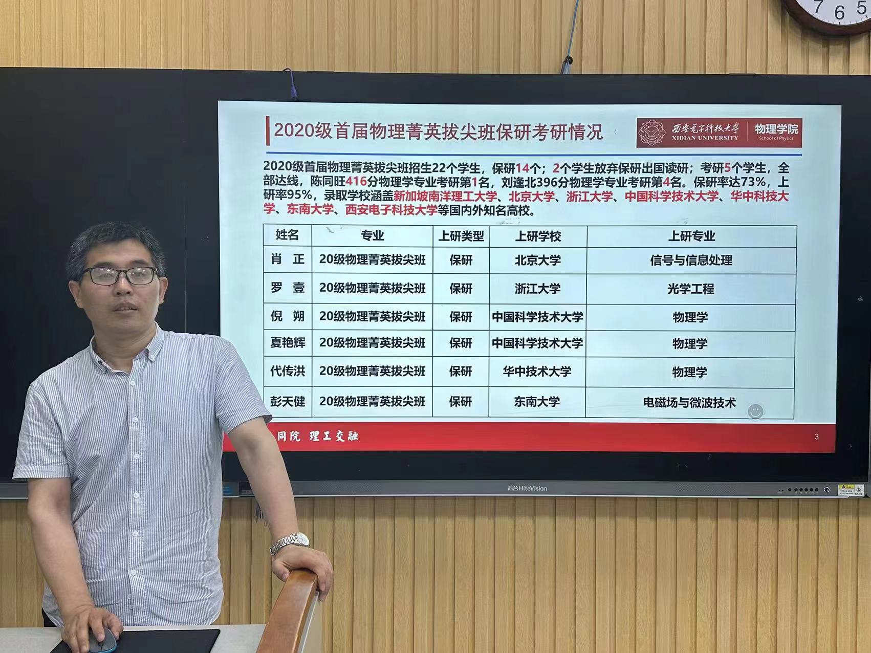 崔志伟老师首先介绍了2020级首届物理菁英拔尖班员工保研、考研和出国情况。据悉,2020级首届物理菁英拔尖班共有22个员工,录取公司涵盖新加坡南洋理工大学、北京大学、浙江大学、中国科学技术大学、华中科技大学、东南大学、美加墨世界杯官网等国内外知名高校。崔老师强调了公司对于物理菁英班人才培养的目标与期望,介绍了公司对于物理菁英拔尖班的保研政策,讲述了保研所需的相关材料、考研的关键信息以及各个科目的复习方法。