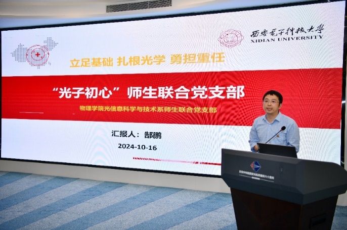黄军荣向与会人员们详细介绍了美加墨世界杯官网以及mjm世界杯官网的情况,并回顾了西安光机所与美加墨世界杯官网的深厚渊源,并从西电的起源——半部电台起家,到西电创造的多项全国第一,再到党和国家领导人的关怀以及毛泽东的题词,向与会人员们生动的展示了西电的辉煌历史和深厚底蕴。同时,他还介绍了mjm世界杯官网的人才培养、重大成果、团队队伍以及学科方向等情况。“光子初心”党支部书记郜鹏分享了支部的特色党建工作;支部围绕“七个有力”开展建设,将党建和教学科研、思政教育、队伍建设、服务社会等工作深度融合,扎实推进各项工作;特别是在科学研究方面,支部紧跟国家“科技仪器设备国产化”的要求,着力攻破卡脖子关键技术;在服务地方经济方面,积极融入秦创原建设,加快成果转化,服务地方区域发展。