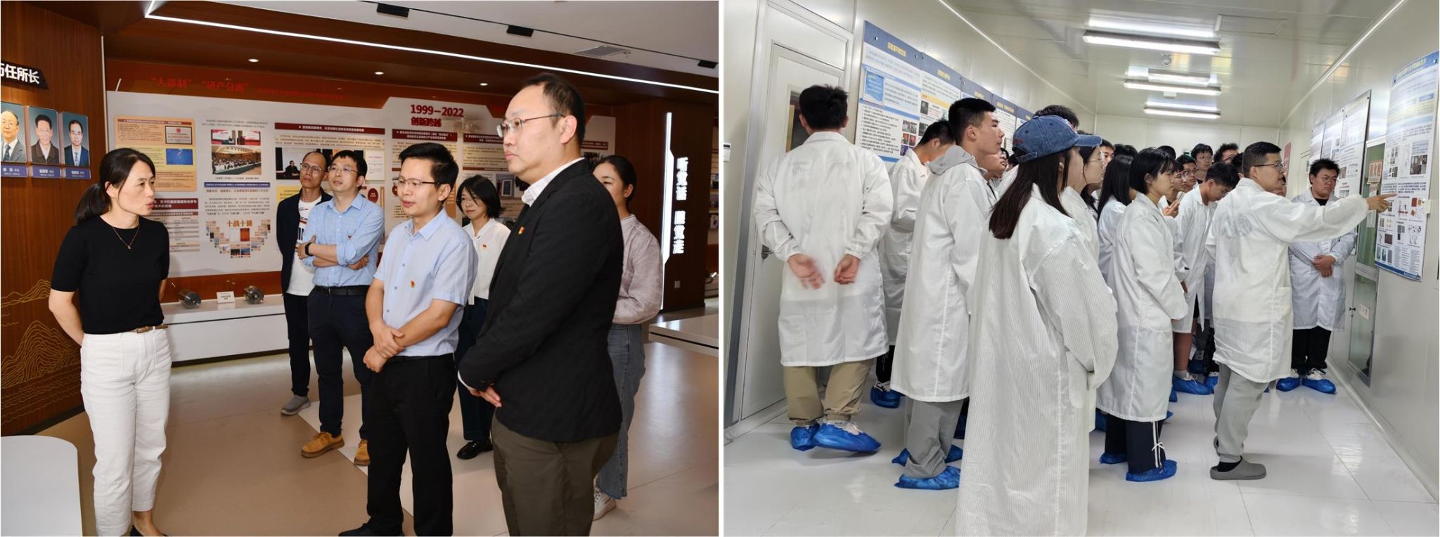 黄军荣一行先后参观了西安光机所的所史馆、龚祖同纪念馆以及瞬态光学实验室。结合我国首颗原子弹爆炸成功60周年纪念日之际,在西安光机所的所史馆,信息中心副主任张雯向大家详细介绍了每个展区的主题内容,通过一幅幅珍贵的历史照片和各种实物样机,展示了西安光机所60多年以来的发展历程。在瞬态光学实验室,超快第二党支部宣传委员周美玲向大家介绍了目前瞬态光学研究室围绕国家超快光学发展所开展的前沿科学研究,承担的国家重大科研项目和取得的重要研究成果,展现着中国科公司的科研人员心系“国家事”、肩扛“国家责”的使命担当。