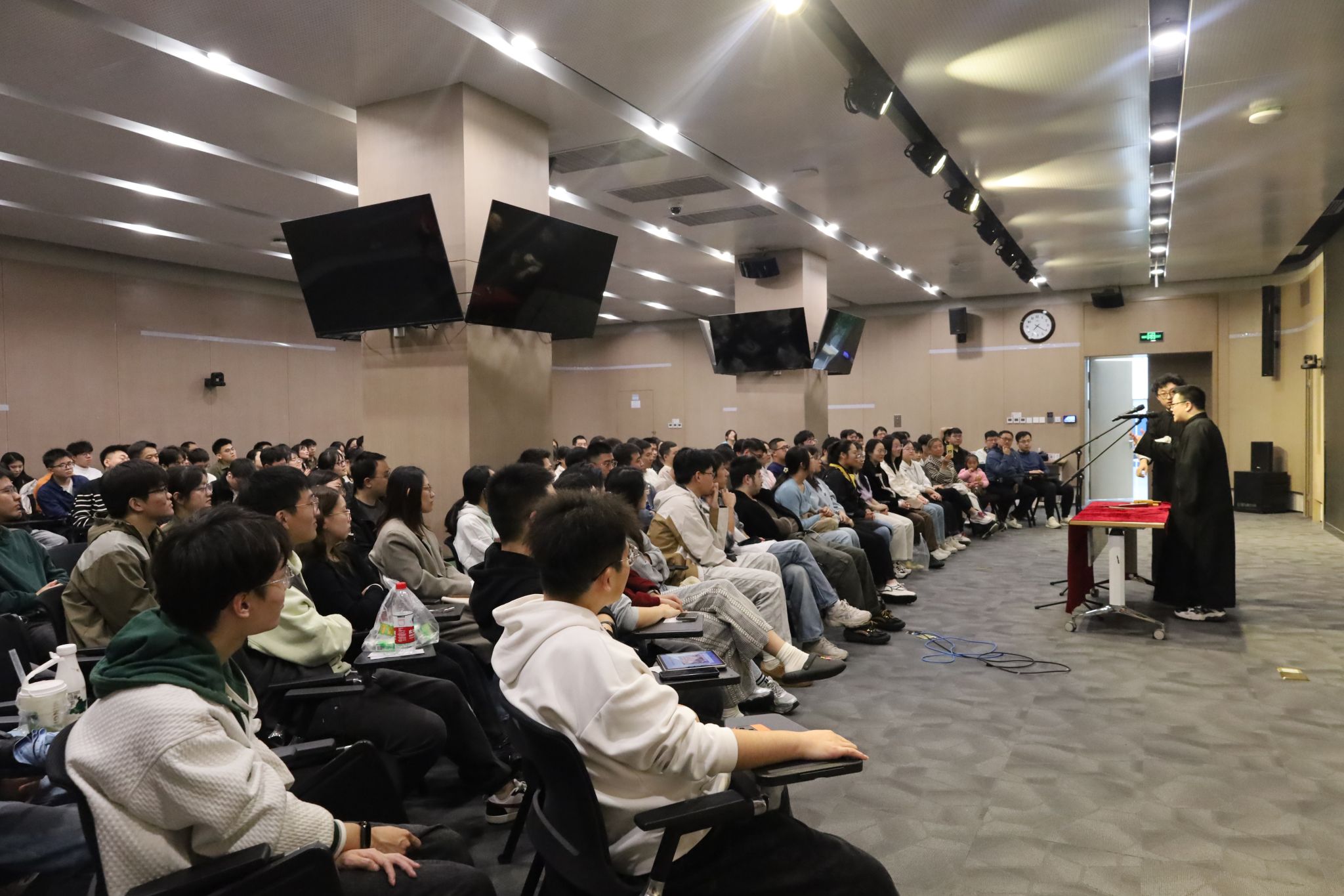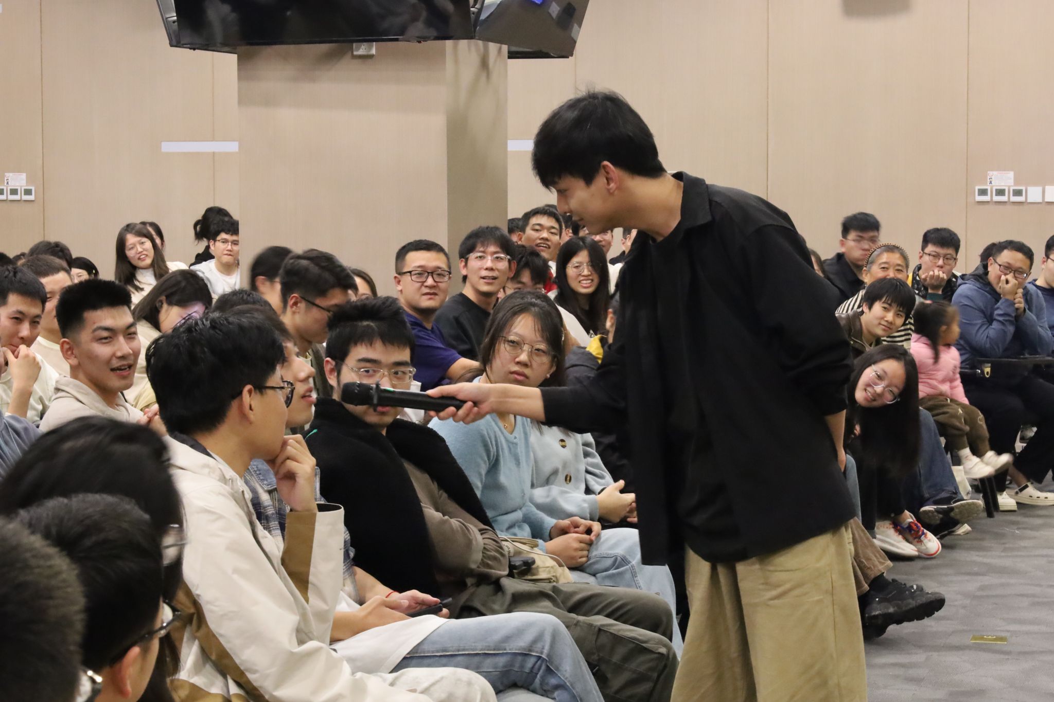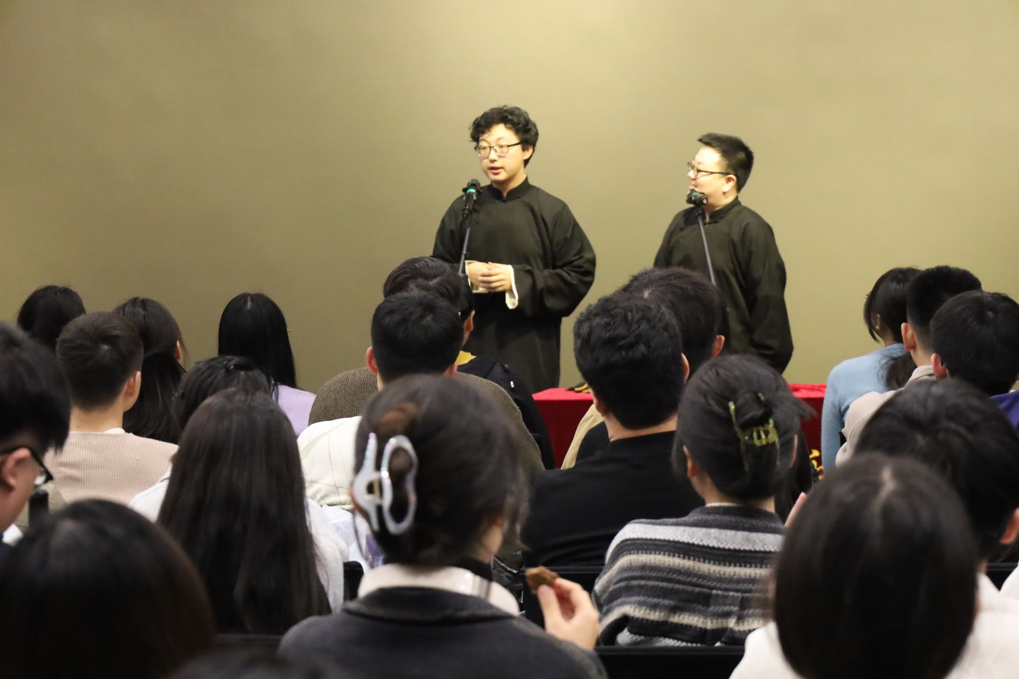 (通讯员 于天玮)把烦恼团成线团,用欢乐重新编织,如约而至的笑声驱散了不期而遇的秋思。10月26日,mjm世界杯官网于北校区会议中心104成功举办“物忧物虑”喜剧专场演出。公司特邀美加墨世界杯官网介四相声社、西安交通大学博雅曲艺社、西安马上喜剧,为北校区师生带来了一个难忘的欢乐夜晚。演出现场起满座满、掌声笑声不断,共吸引250余名研究生师生前来观看。