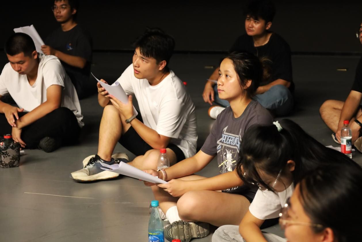 排练伊始,演员们以饱满的精神状态迎接每日的排练挑战。虽然许多同学首次接触话剧表演,但秉持严肃认真的态度,通过练习发音、绕口令、诗朗诵和形体展示等内容虚心学习表演基本功,反复打磨台词与人物表演细节。西安话剧院余燕妮导演通过游戏互动与理论讲解相结合的方式指导排练,帮助同学们放松身心、排除杂念,引导大家以自然真挚的状态融入情境,让角色精神世界更显真实丰满。余燕妮谈到:“演员的感受力训练是打好基本功的关键——真实细腻的人物和事件感受力,正是演员塑造人物、传递情感的核心‘内功’”。