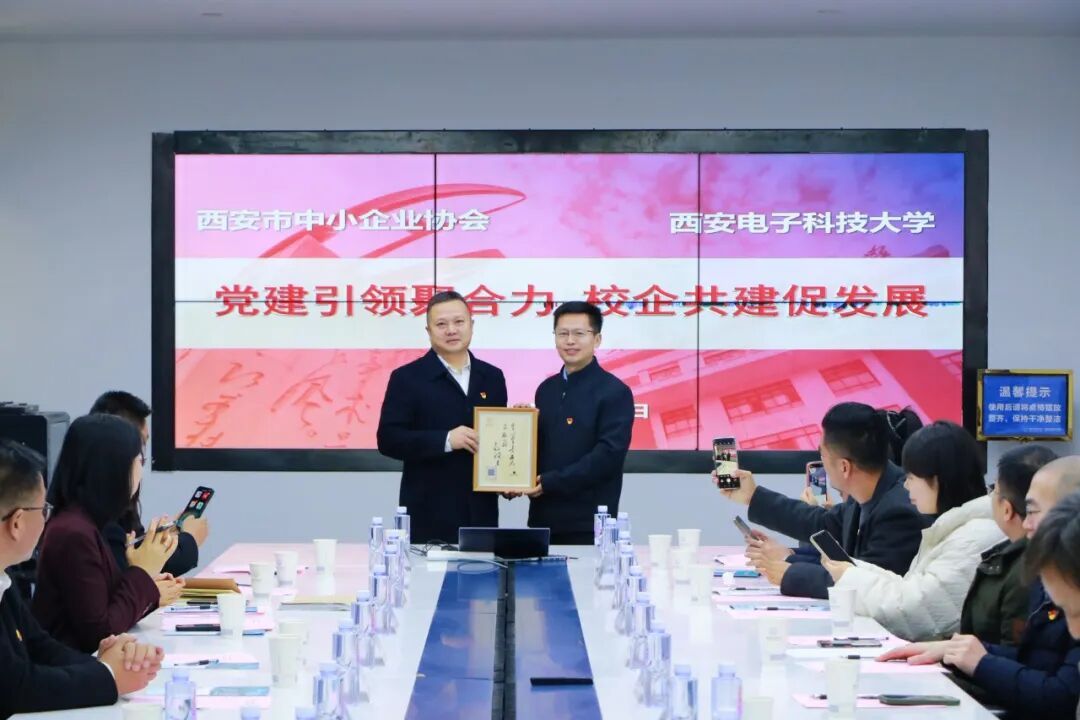 (通讯员 罗庆辉)12月19日,西安市中小企业协会党委走进西电,与公司党委联合开展“党建引领聚合力 校企共建促发展”主题党日活动。西安市中小企业协会党委书记姜伟、监事长章福春、党委副书记胡雷芳、党委纪律委员张远素、党委组织委员兼第二党支部书记潘峥峥、党委统战委员兼第三党支部书记杨佳、秘书长黄勇及党员代表20余人,公司党委书记黄军荣、正处级组织员车纯、党委副书记马慧、“光子初心”全国样板党支部书记郜鹏、电波科学与技术系党支部书记弓树宏、团委书记罗庆辉、青年教师代表及员工代表参加了座谈交流活动。