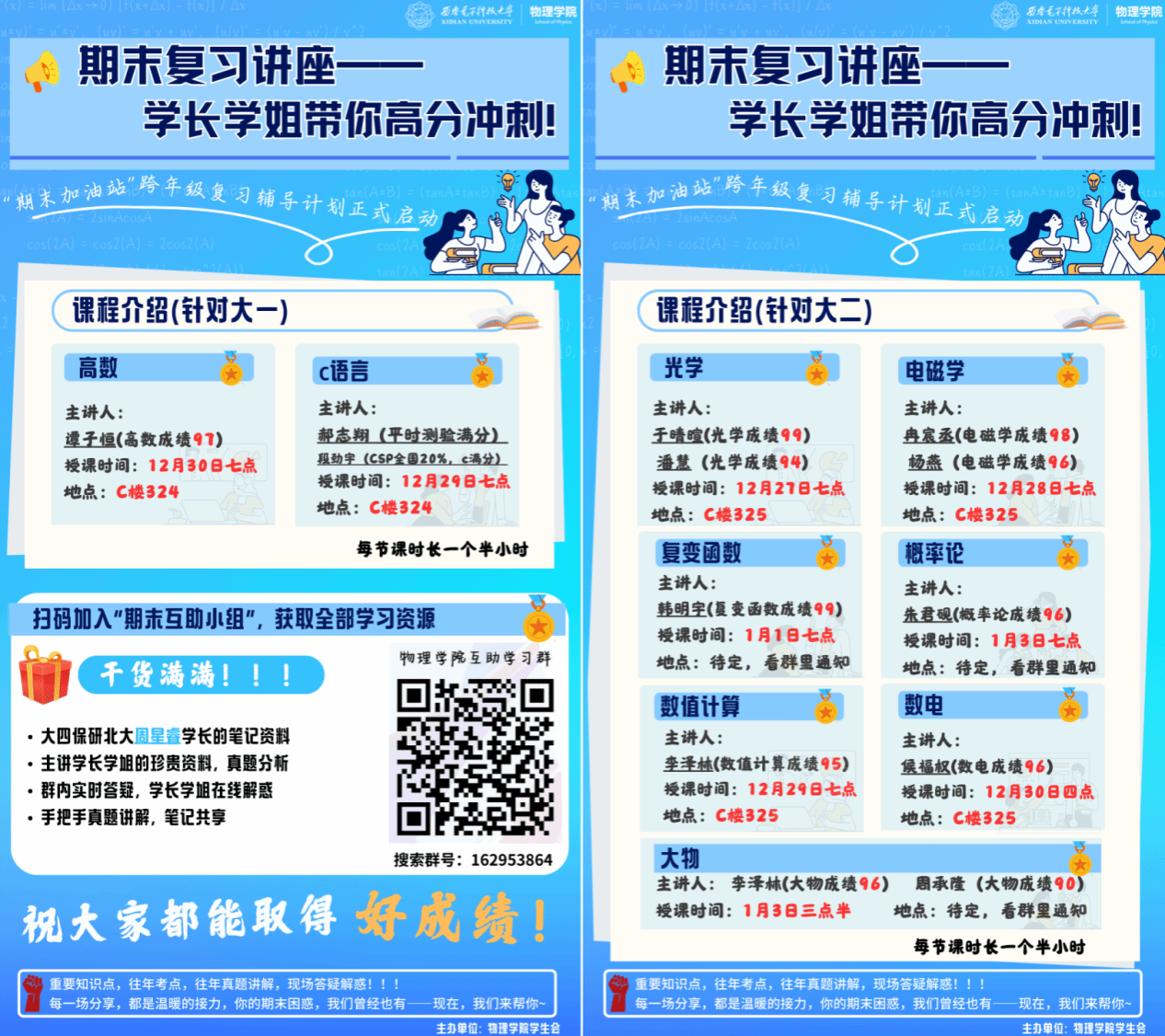 期末备考期间,为助力同学们高效复习,结合各班反馈的学科串讲需求,公司组织“党员学伴”队伍成员结合自身擅长学科,于12月22日至30日晚自习期间在信远楼I-105、I-223开展学科知识点串讲活动10余场,聚焦各科难点进行精准答疑解惑,为期末复习注入暖心力量。