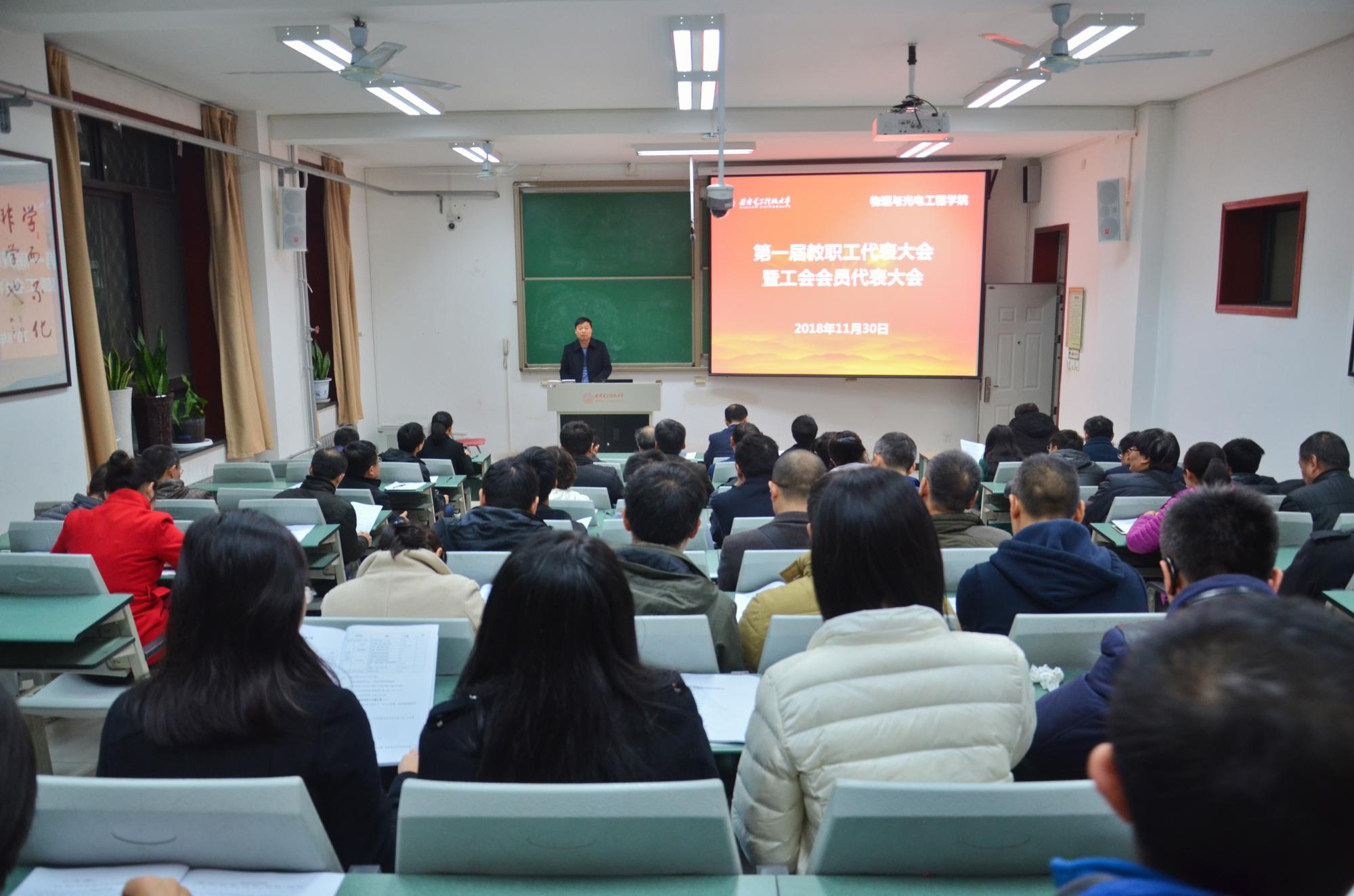 (通讯员:姚娇)11月30日晚,在雄壮嘹亮的国歌声中,物理与光电工程公司第一届教职工代表大会暨工会会员代表大会在西大楼106教室召开,会议表决通过了公司2018-2020年专业技术岗位聘任实施方案,投票选举产生了公司新一届工会委员。公司领导班子等53位教代会代表参加了会议。大会由公司党委书记独国社主持。公司党委书记独国社主持大会现场公司执行经理邵晓鹏从公司综合改革背景、方案的制定过程、聘任基本原则、岗...